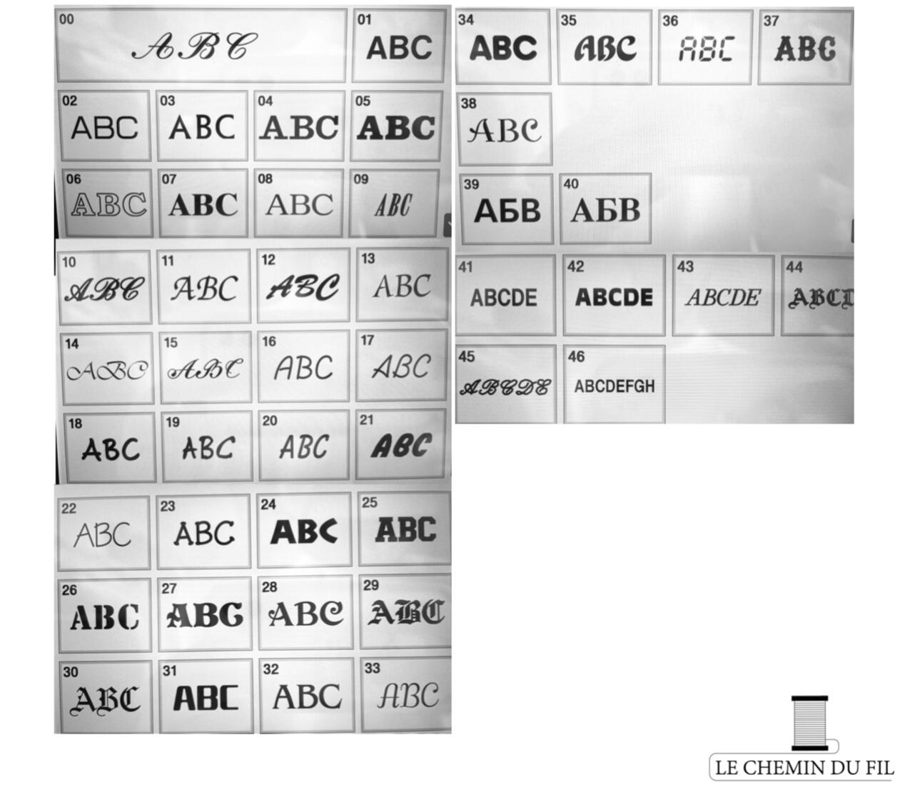 Nous proposons trois types d’écritures, selon les typographies présentées sur l’image :Petit cadre (environ 5 x 1,5 cm) : 11 €Moyen cadre (environ 10 x 3 cm) : 14 €Grand cadre (environ 15 x 5 cm) : 17 €Nous réalisons également des broderies personnalisées selon vos envies. Pour toute demande spécifique, contactez-nous à [email protected]